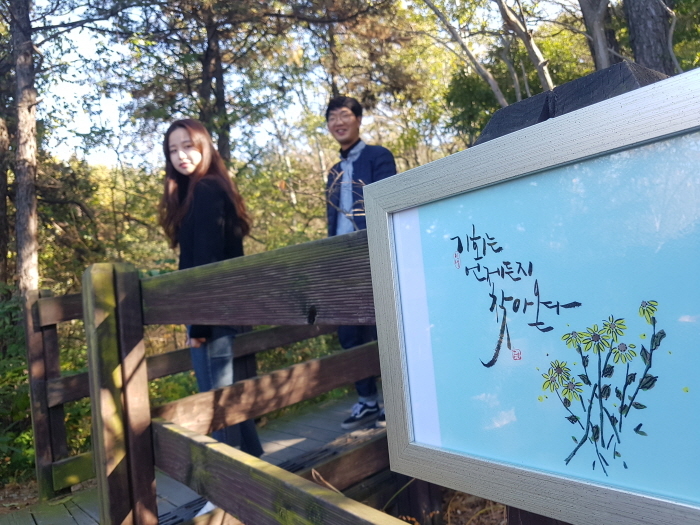 '깔막을 오르는 사람들'은 시 25점, 그림 5점, 글귀 25점 등 그림과 캘리그라피를 덕음산 솔바람길에 전시, 솔바람길을 찾는 시민과 관광객에게 아름다운 공간을 재능 기부했다.