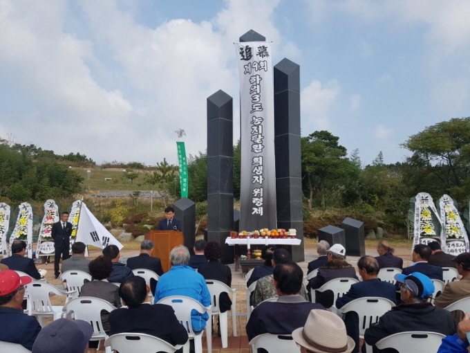 (사)하의3도농지탈환운동기념사업회(회장 김수현) 주최로 열린 이번 위령제는 하의면, 신의면 주민들과 오재선 부군수, 군의원 등 100여명이 참석해 희생을 기리는 헌화와 분향, 추도사, 추모사 등 순으로 진행됐다.