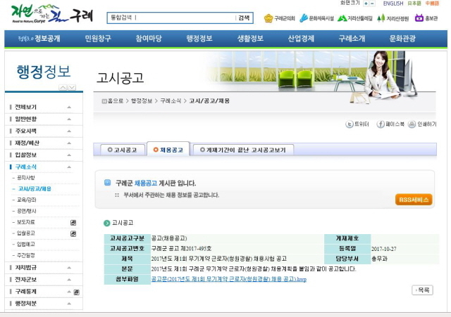 이들 48명의 청원경찰 지원자중에 구례군에서 근무하고 있는 무기계약직이 42명이 지원한 반면 일반인은 6명에 불과 했다. 하지만, 9명의 합격자중에 일반인들은 단 한명도 선발되지 않고 9명 모두 무기계약직들만 선발됐다.