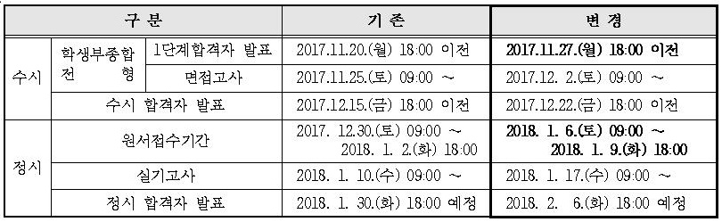 또한 다음달 30일 시작 예정이던 정시 원서 접수도 2018년 1월 6일부터 실시하기로 했다.