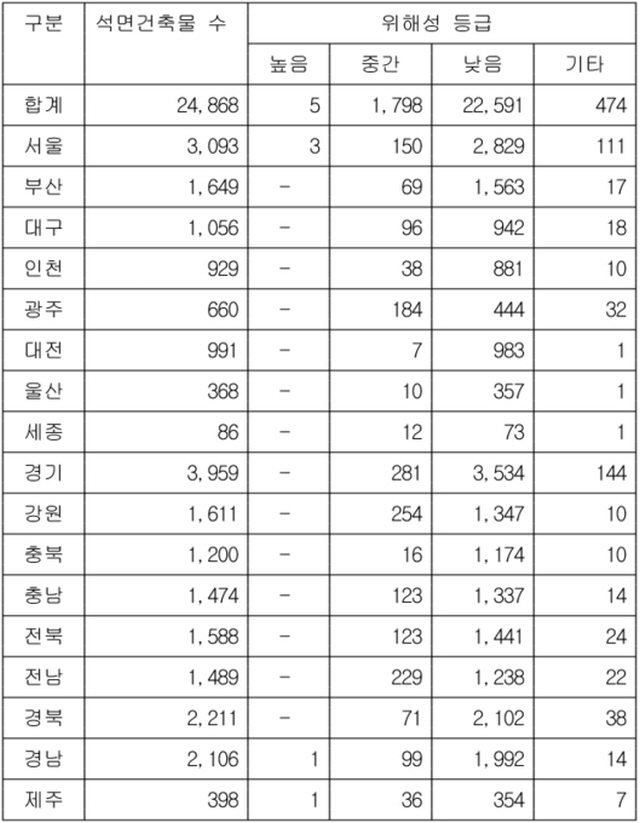 [표] 전국 석면건축물 현황(2017년 11월 기준)
