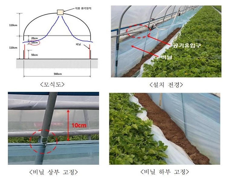 19일 농촌진흥청 시설원예연구소는 비닐하우스 측창 안쪽 부분에 하우스 전체 길이만큼 비닐을 부착하는 간단한 방법을 공개했다.