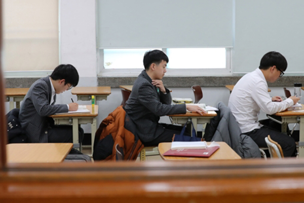 ▲ 20일 오전 경북 포항시 북구 포항고등학교에서 등교한 수험생들이 공부하고 있다. ⓒ연합뉴스
