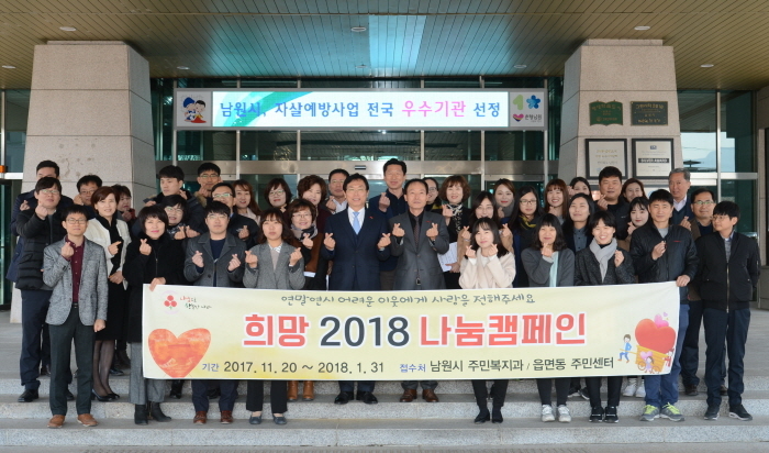 남원시는 지난해 ‘희망2017나눔캠페인’ 기간 동안 총 3억8800만원의 모금실적을 거둬, 사회복지공동모금회로부터 2016년도 배분사업비 7억1600만원을 지원받았다.