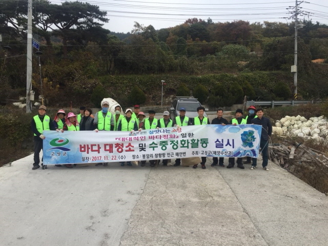 경남 고성군은 22일 오전 10시, 동해면 봉암리 장항마을 장항선착장 인근 해안변에서 바다대청소 및 수중정화활동을 실시했다.