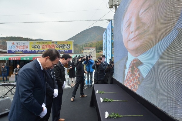 고(古) 김영삼 전 대통령 서거 2주기 추모식이 22일 오전 10시 권민호 거제시장, 김한표 국회의원, 반대식 거제시의회 의장, 김영삼 전 대통령 친인척 등 300여 명이 참석한 가운데 김영삼 대통령 기록전시관 앞 광장에서 열렸다.