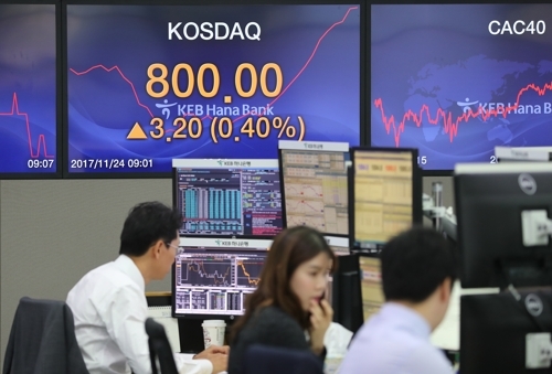그러나 23일 2% 넘게 올라 796.80으로 장을 마친 데 이어 이날 오전 800선을 돌파했다. 코스닥지수가 800선 고지를 밟은 것은 2007년 11월 7일(장중 고가 809.29) 이후 10년 만이다.