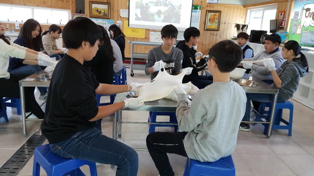 이날 학생들은 영오면에 위치한 정동목장에서 농장을 견학하고 치즈만들기 체험을 통해 축산 관련 직업에 대해 체험하는 시간을 가졌다.