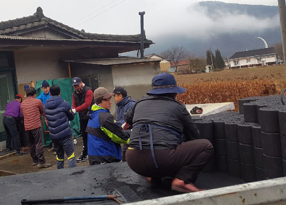 ▲강원 정선군 여량면청년회(회장 오윤교)는 연말을 맞아 27일 지역의 어려운 이웃들이 따뜻한 겨울을 보낼 수 있도록 저소득층에‘사랑의 연탄봉사활동’을 실시하고 있다. ⓒ정선군