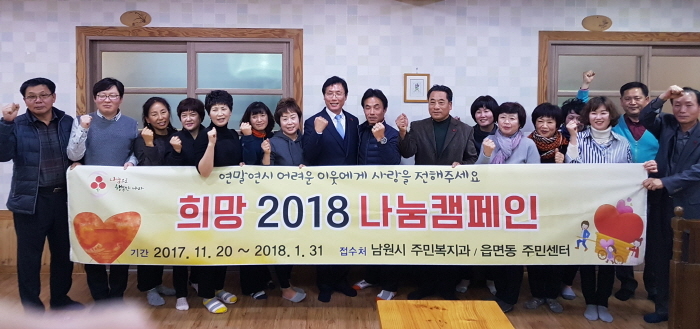 '나눔으로 행복한 나라'를 슬로건으로 한 희망2018나눔캠페인은 내년 1월31일까지 사랑의열매나눔봉사단과 협력 전년도 대비 3.1% 증가한 4억을 목표로 정하고 유관기관, 단체, 기업체 등을 방문 홍보, 성금모금특별방송, 사랑의열매 달아주기 캠페인 등 적극 추진할 예정이다.