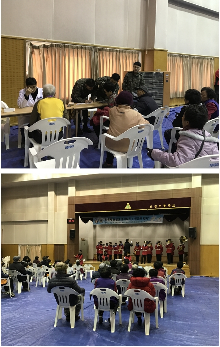 군장병과 150여명의 대규모 대민봉사단은 보절면 주민 200명을 대상으로 의료(내과,치과), 이‧미용, 농기계 수리, 군부대 위문공연, 중식제공 등 다양한 분야의 봉사를 실시했다.