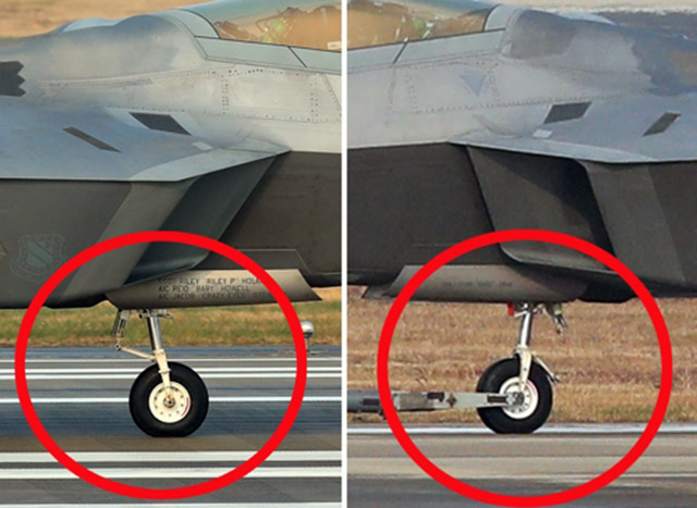 의혹 대상이 된 F-22기는 비질런트 에이스 첫 훈련을 마친 4대 중의 한대로, 랜딩기어(항공기 바퀴) 연결 부분(링크)이 정상적인 전투기와 달리 분리된 모습이 관찰됐다.