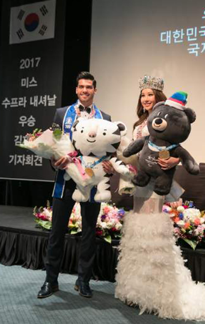 또 “2017 미스터 수프라 내셔날 우승자의 성씨가 ‘코레아(Correa)’인 미스터슈프러내셔널이 탄생하자 외신은 ‘코레아의 두 남녀가 나란히 우승했다’며 큰 관심을 보였다”면서 “앞으로 두 사람이 한국을 많이 알릴 수 있을 것이며 평창동계올림픽 서포터로 위촉되었음을 알린다”고 전했다.