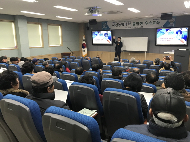 사천농업기술센터 천인석 소장은 지난 13일 사천농업대학 졸업생을 대상으로 후속교육을 실시했다.