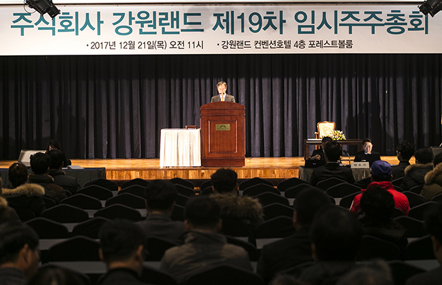 ▲21일 강원랜드 컨벤션호텔 포레스트볼룸에서 강원랜드 제19차 임시주주총회가 열리고 있다. ⓒ강원랜드