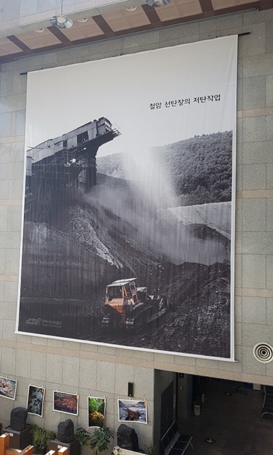 이번에 설치한 전시물은 2015년 석탄광업소의 기록사진으로 촬영되었던 철암 선탄장의 저탄작업 사진을 가로 7미터, 세로 9미터 크기의 대형 걸개로 제작한 것으로 석탄박물관 내 중앙홀 13미터 높이의 벽면에 설치되었다.