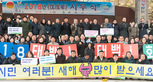강원 태백시가 2일 태백문화광장에서 김연식 태백시장을 비롯한 전 직원에 한자리에 모인 가운데 2018년 무술년의 힘찬 발걸음을 함께 내딛는 시무식을 가졌다.