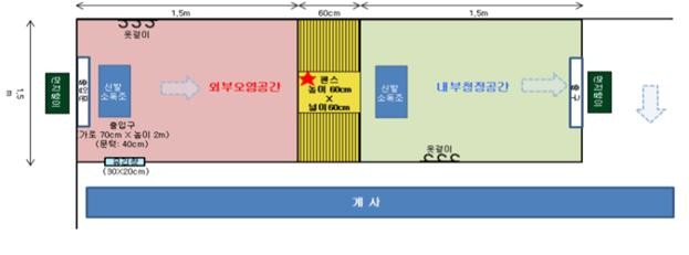 외부의 오염된 공간에서 내부의 깨끗한 공간으로 진입이 쉬울수록 바이러스도 쉽게 들어오며 축사 내부의 오염 확률도 커지게 된다.