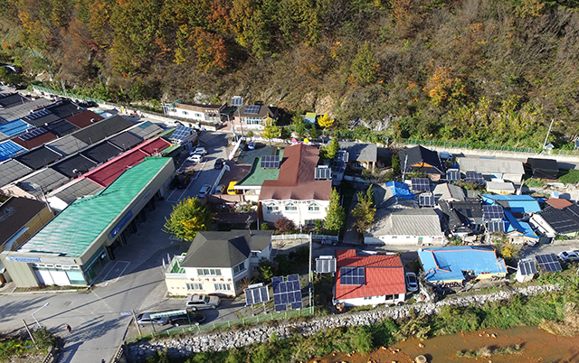 태백시 삼수동 총47가구에 태양광, 태양열 등 2개의 신재생에너지원을 복합 설치해 에너지 자립율 42%를 달성했다.
