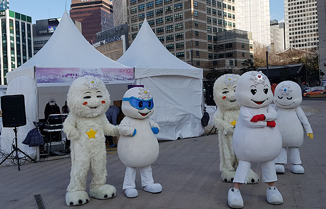 태백시 축제위원회 관계자와 축제위원 등 30여 명은 9일 서울시청 앞 서울광장에서 눈축제 캐릭터 댄스공연과 포토타임, 가두홍보를 전개하고 겨울 최고의 축제인 태백산 눈축제를 알리고 있다.