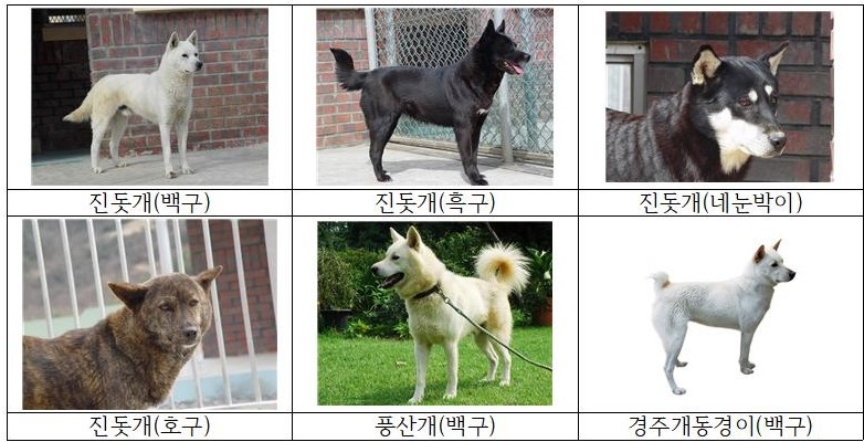 유전체 분석에 활용된 우리나라 토종개는 진돗개(백구, 흑구, 네눈박이, 호구), 풍산개(백구), 경주개동경이(백구) 총 3품종, 6개 집단, 189마리이다.