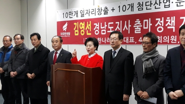 경남지사 선거에 나서는 자유한국당 김영선 전 국회의원(옛 한나라당 대표)은 혁신도시 완성에 이어 뿌리산업과 항공국가산업단지 조성, 우주산업도시의 전초기지인 우주부품시험센터와 항공전자기 기술센터 구축 등으로 인구 50만의 자족 진주시대를 열고 있고 경남도청 서부청사가 있는 국난극복의 충절과 절개 도시, 교육·문화 중심의 도시 진주에서 시민 여러분들께 인사드리게 돼 무한한 영광입니다라고 인사했다.