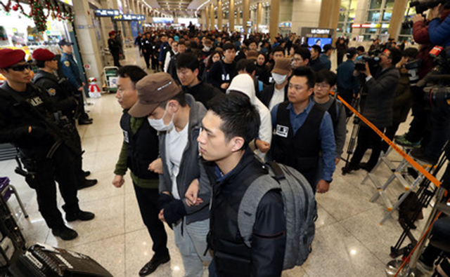 지난해 12월 송환된 피의자 47명은 인터폴(국제형사경찰기구) 최상위 수배등급인 적색수배 대상자 11명을 포함해 보이스피싱(28명) 등 사기 사범 39명과 마약·폭력·절도 사범 등이다.