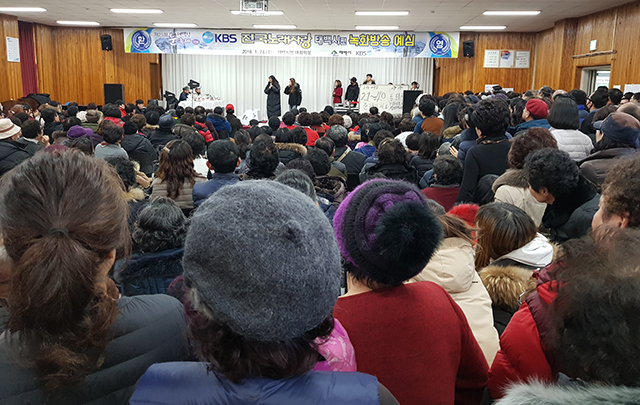▲24일 태백시청 대회의실에서 열린 KBS전국노래자랑 태백시편 예심이 열린 가운데 참가자와 응원을 나온 태백시민들이 인산인해를 이루고 있다. ⓒ프레시안