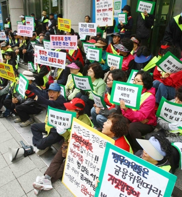 | ▲ 부산저축은행 사태 피해자들이 특혜 인출 등에 항의하면서 집회를 벌이고 있다. ⓒ뉴시스 |