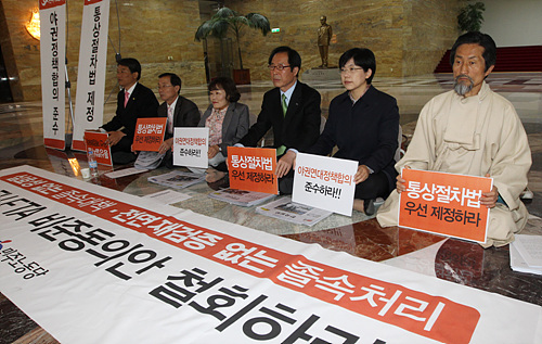 민주노동당, 진보신당, 국민참여당은 "지난 2일 있었던 이른바 '여야 합의'를 모든 야당의 뜻을 왜곡한 민주당의 반칙행위일 뿐"이라며 "민주당은 국회에서 부여된 교섭단체라는 지위가, 결코 야권 대표로서의 지위를 뜻하는 것이 아니라는 점을 알아야 한다"고 지적했다.