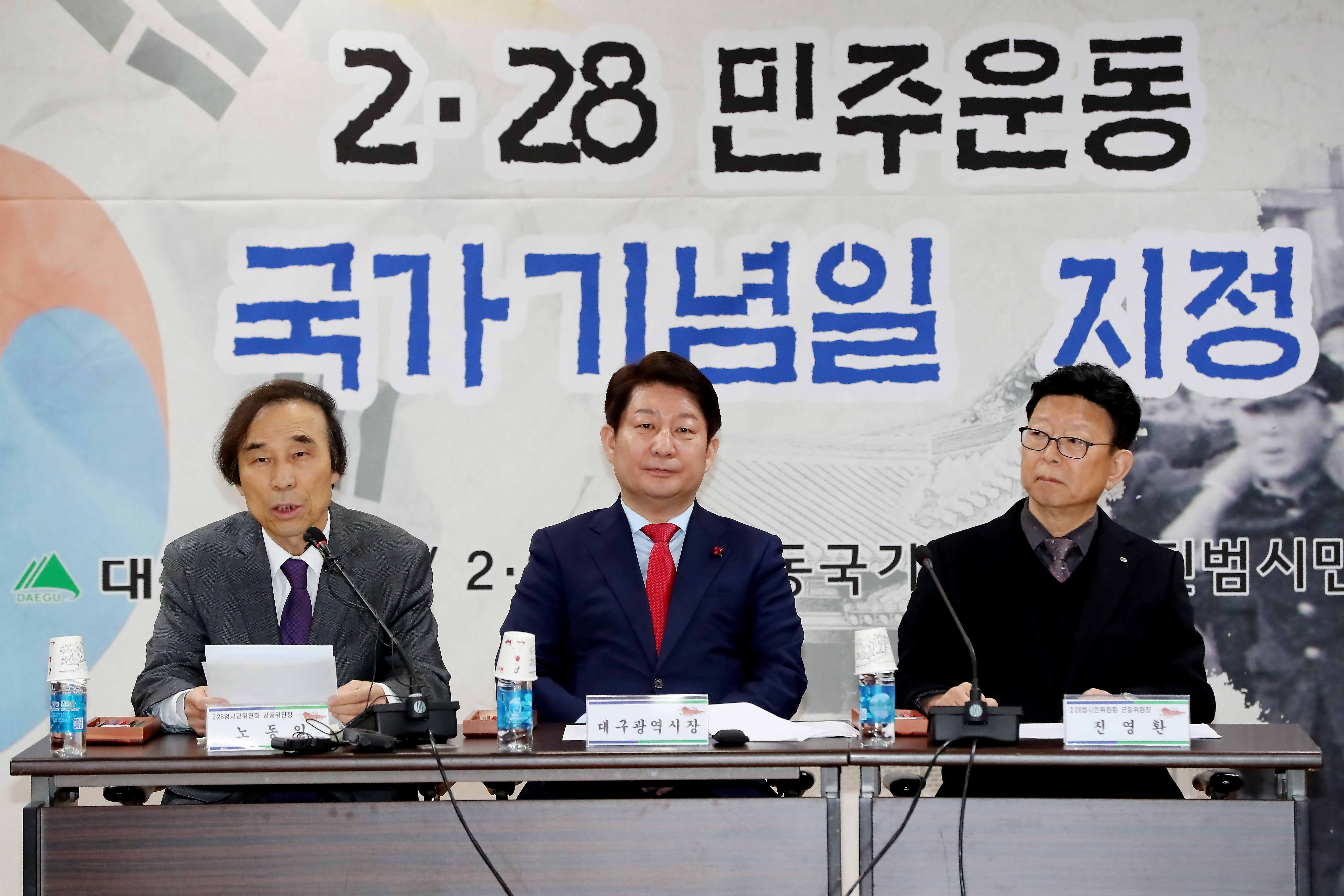 권영진 대구시장은 “2·28민주운동이 국가기념일로 지정된 것을 대구시민과 함께 환영하며 그동안 뜻을 모아준 정부와 지역 국회의원을 비롯한 정치권에 대해 깊이 감사드린다”고 말하고 “앞으로 2·28민주운동을 대구의 빛나는 역사정신문화로 기려서 후손들에게 물려줄 수 있도록 노력하겠다”고 강조했다.