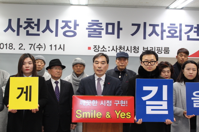 이종범(58·자유한국당) 사천시의회 부의장이 7일 사천시청 브리핑룸에서 기자회견을 열고 사천시장 선거에 출마하겠다고 밝혔다.