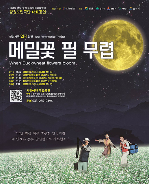 2018 평창올림픽과 패럴림픽의 성공을 기원하며 공연되고 있는 신명 가득 연극 ‘메밀꽃 필 무렵’은 사랑과 인연을 주제로 대한민국 고유의 서정성을 감동 있게 표한한 강원도립극단의 대표작이다.