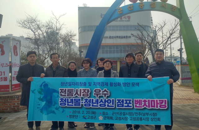 경남 고성군은 20일, 지역청년 일자리 창출을 위해 군산, 전주 전통시장 내 우수 청년몰 및 청년상인 점포 벤치마킹에 나섰다.