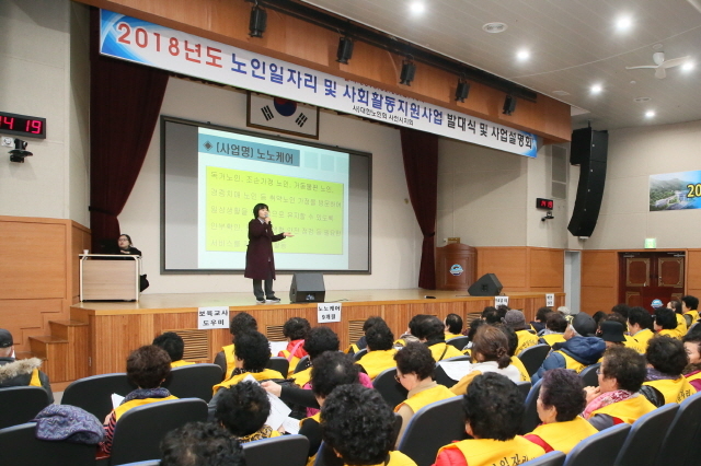 2018년 노인일자리사업은 지난 1월부터 실시된 12개월 연중사업과 이번에 시작하는 9개월 사업 등 총 11개 사업 1075명이 적성에 맞는 일자리를 선택해 참여할 수 있다.