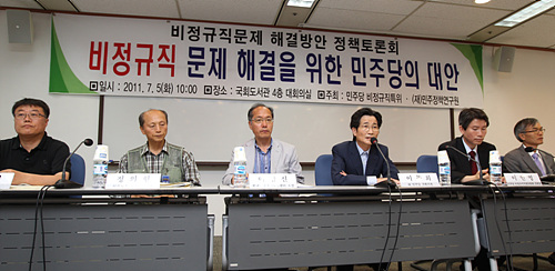 민주당 비정규직특위와 민주정책연구원은 이날 국회도서관에서 '비정규직 문제 해결을 위한 민주당의 대안'이라는 제목의 토론회를 열었다. 이 토론회는 그동안 비정규직특위가 전문가, 현장 활동가, 환경노동위원회 위원 등과 함께 토론을 통해 만들어낸 종합대책을 처음 공개하는 자리였다.