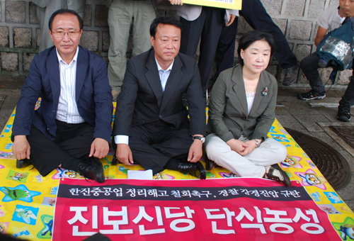 | ▲ 한진중공업 사태 해결을 촉구하며 13일부터 무기한 단식농성에 들어간 심상정(오른쪽), 노회찬(왼쪽) 진보신당 고문. ⓒ진보신당 |