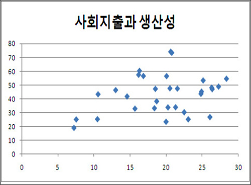 경제협력개발기구(OECD) 회원국 전체를 놓고 사회지출과 생산성 사이의 연관성을 연구해 본 결과다. 복지 수준이 높은 국가일수록 생산성은 오히려 높다는 것을 확인할 수 있다.