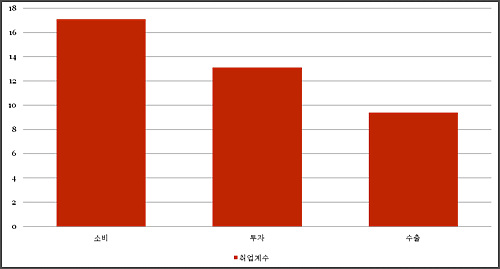 오히려 수출보다 더 고용과 밀접한 관련이 있는 분야는 내수다. 내수는 일자리와 직결돼 있다. 수출, 투자, 소비가 각각 얼마만큼의 일자리를 만드는지를 보여주는 취업유발계수를 보면 투자나 수출의 취업유발계수보다 소비의 그것이 월등히 높다.