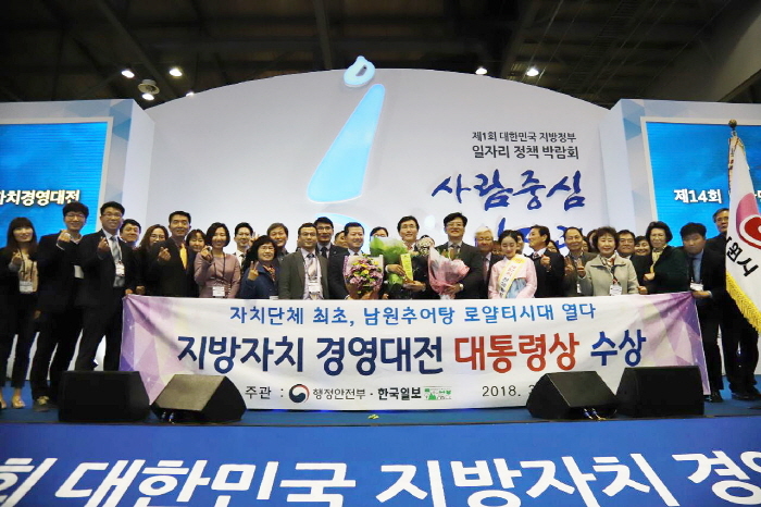 지난 9일 오전 경기도 일산 킨텍스에서 열린 수상에서 남원시는 민선6기 들어 대통령상을 3회(2014~2015년 예산효율화 발표대회, 2018년 지방자치경영대전 발표대회)수상하는 영광을 안았다.