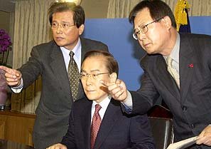 | ▲ 이회창 언론특보 당시 이원창 코바코 사장.(왼쪽) . 오른쪽은 양휘부 전 코바코 사장. ⓒ연합 |