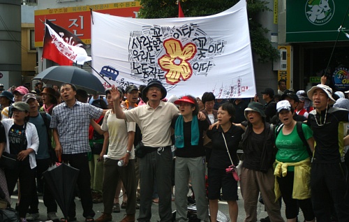 또 정 최고위원은 "(한진중공업지회) 조합원들이 국세청에 고발한 역외탈세 의혹과 정리해고 다음날 174억 원의 배당잔치와 57억 원의 현금배당잔치에 대한 국세청 등 당국의 조사 결과를 최고책임자인 대통령이 국민에게 보고해야 한다"고 강조했다.