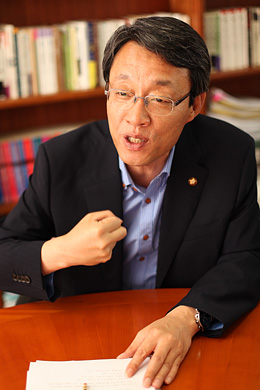 김성식 : 복지 제도를 셋으로 나눠서 생각한다. 첫째 보편적 복지로 설계돼야 할 4대 보험을 축으로 하는 사회 보장 부분이다. 이를 구축하는 핵심은 4대 보험의 사각 지대를 없애는 것이다. 둘째, 공적 부조가 있다. 공적 부조는 기초생활 수급자, 조금 더 나가면 차상위 계층 등 사회적으로 취약한 곳을 보완하는 것이다. 맞춤형이 될 수밖에 없는데, 이미 법안을 내 놓았다. 부양 의무자 기준을 완화해서 기초생활수급자를 10만 명 정도 늘리는 내용이다. 예산이 2500억 가량 든다. 셋째, 복지 서비스 분야다. 여기에서 제일 중요한 게 보육과 교육이다. 당에서 양육 대상 지원 확대, 보육 교사 처우 개선 등 대책을 강구하고 있다. 저출산 대책의 일환이기 때문에 더욱 예산이 강화돼야 한다고 본다.