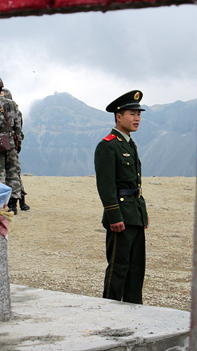 북한과 중국의 국경은 붉은 줄 하나가 전부였다. 빨래줄 같은 줄 옆에 5호 경계비가 놓여 있고 중국 군인들이 관광객들에게 선을 넘지 말라고 호통치고 있었다. 그러나 피부 검은 군인도, "변경을 넘는 것을 엄금하며 변경 질서를 교란하는 것을 엄금한다"는 경고판도 관광객의 기념 촬영까지 막기는 무리였다. 사람들은 붉은 줄을 한 발 넘어 브이(V) 자를 손으로 그리며 사진을 찍었다.