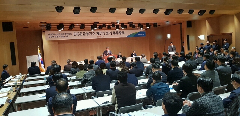 대구은행 노조도 이날 주주총회장 입구에서 피켓을 들고 “박 행장이 행장직과 지주회장 자리를 동시에 즉각 내려놔야 한다”며 “직원 채용비리에 얽힌 인사들을 해임하라”는 등의 구호를 외쳤다.