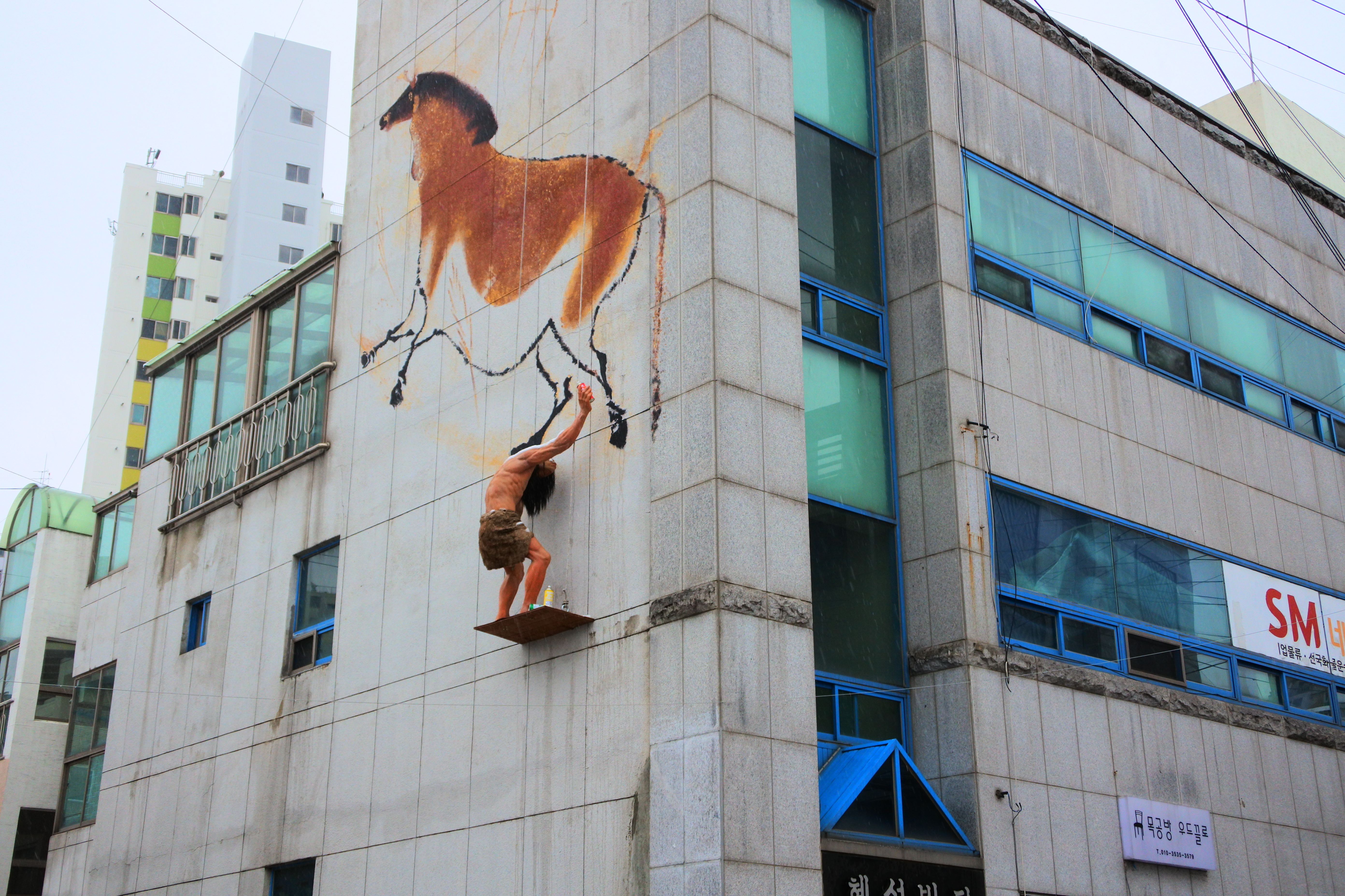 2만 년 전 선사시대의 인류가 21세기 대구광역시 대로변에 나타났다. 시기를 앞당겨 너무 일찍 나타났나?