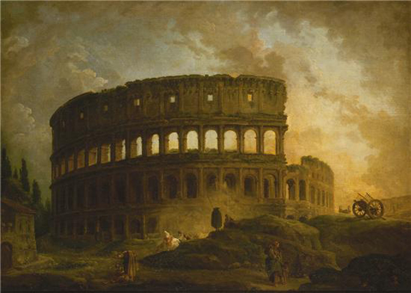 샤를루이 클레리소의 <콜로세움>(1760년)은 종이에 과슈(구아슈)와 잉크로 그린 그림이다. 여행이 시작되었고, 그림의 재료도 바뀌었다. 로마의 옛 성전들은 러시아인에게는 유럽을 배우는 새로운 이해였을 것이다. 유럽에 대한 러시아의 동경은 프랑스의 혁명 과정을 뒤따라, 러시아인들이 개인을 중시하게끔 하는 계기가 된다. 새로운 미적 기준으로 낭만주의가 나타난다. 살아있는 것, 위대한 영웅을 드러내는 것에 이 시대의 미술은 멈칫한다. 대신에 우리의 삶과 죽음에 의문을 제기하고, 그런 그림을 새로운 가치로 끌어올린다.
