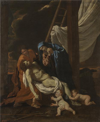 언제나 그랬듯이, 새로운 것은 강력한 과거를 훼손하면서 등장한다. <십자가에서 내림>은 인간과 신, 과거와 현재, 빛과 어둠 속에서 가벼움과 무거움 사이를 뚫고 떠올랐다. 니콜라이 푸생은 각각의 존재를 드러내기 위해 선명하게 그들을 배치했다. 색채는 여인들을 감싼다. 일렁이는 감정이 아이의 보드라운 살결과 눈빛이 흔들리는 여인, 거대한 기둥 위에 우뚝 서 있다.