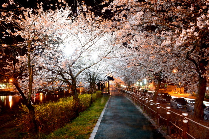벚곷축제장은 경천변을 따라 약 1.4km 구간에 만개한 벚꽃이 장관을 이룬다. 야간에는 경천 야간경관 조명사업의 다채로운 조명과 빛의 하모니로 벚꽃 장관은 더욱 빛을 발할 것으로 기대를 모으고 있다.