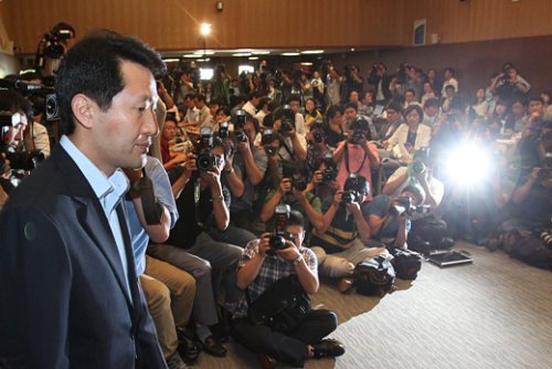 | ▲ 주민투표가 끝난 뒤 입장을 밝히려는 오세훈 서울시장. ⓒ프레시안(최형락) |